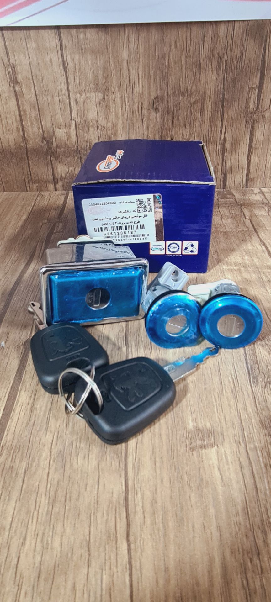 قفل سوئیچی سه گانه درب ها و صندوق عقب پژو 405 طرح قدیم همراه با کلید دینا پارت