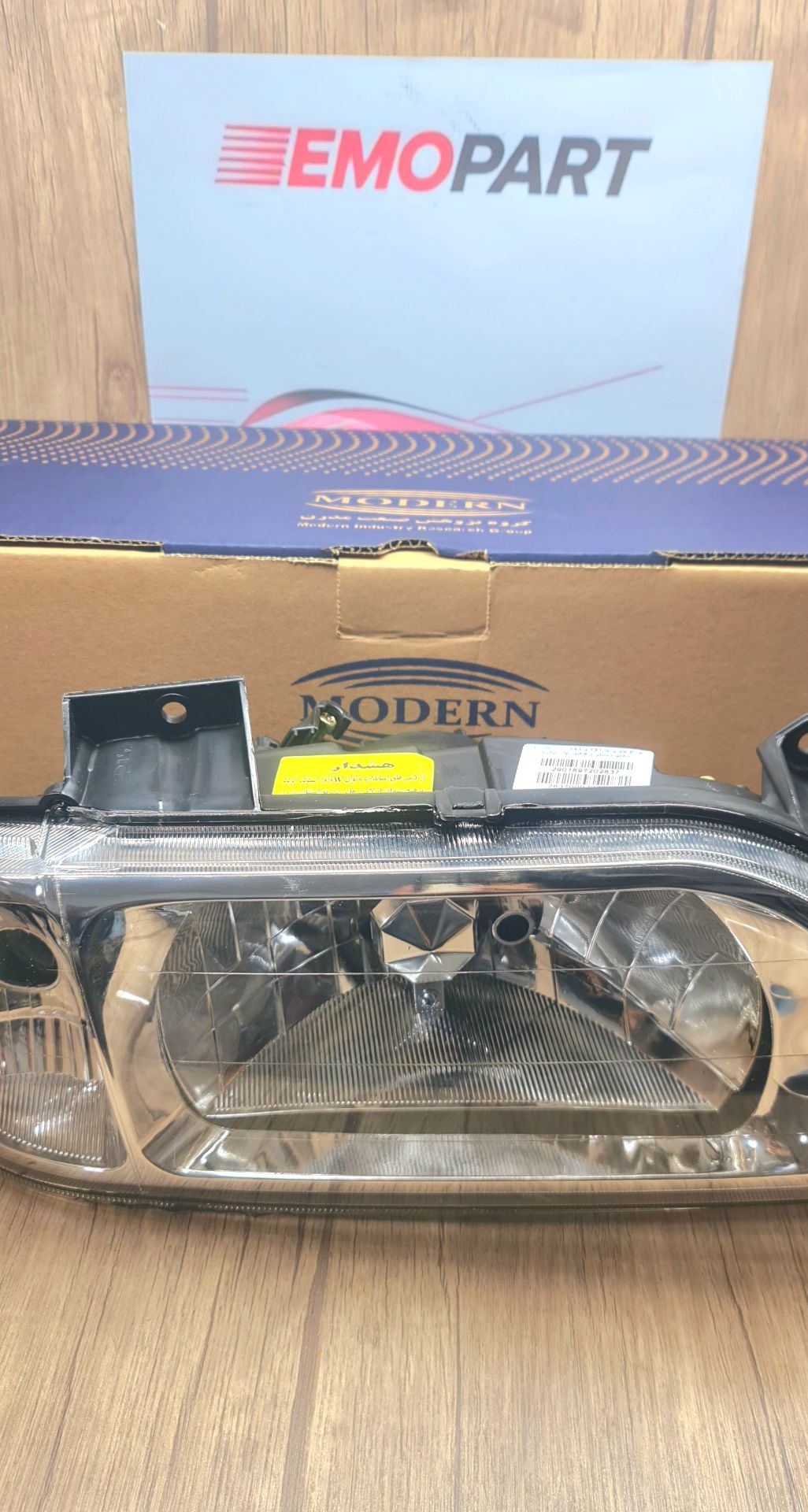 مجموعه بزرگ قطعات خودرویی اِمو پارت چراغ جلو پراید 131 را از برند مدرن در سبد کالایی خود قرار داده است که جنس بدنه آن از مواد اولیه بسیار با کیفیت ساخته شده که بسیار مقاوم بوده وبه راحتی نمیشکند یا ترک نمیخورد و جنس طلق آن نیز بسیار شفاف بوده که پخشش و وضوح نور بسیار بالایی دارد وبسیار مقاوم در مقابل تابش نور آفتاب بوده که باعث میشود به راحتی زرد یا کدر نشود.