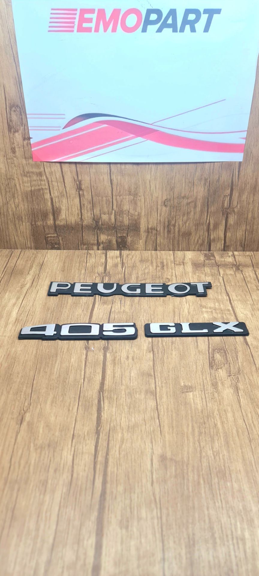سمت چپ آرم نوشته پژو و سمت راست ابتدا آرم نوشته 405 و بعد آرم جی ال ایکس